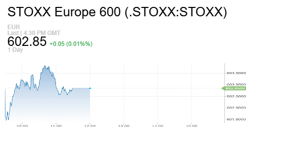 مؤشر Stoxx Europe 600 الأوسع نطاقًا استقر شبه ثابت عند 602.8 نقطة بزيادة طفيفة بلغت 0.01%