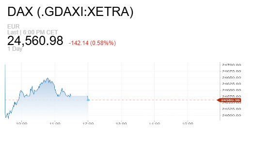 فيما تراجع مؤشر DAX الألماني 0.51% إلى 24,577 نقطة.