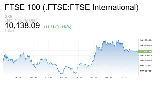 وصعد مؤشر FTSE 100 البريطاني 0.11% مسجلًا 10,138 نقطة