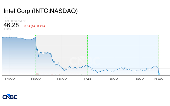 في المقابل، هبطت أسهم شركة إنتل بنسبة 12% بعد أن أعلنت الشركة المصنعة للرقائق عن توقعات مخيبة للآمال للربع الأول.