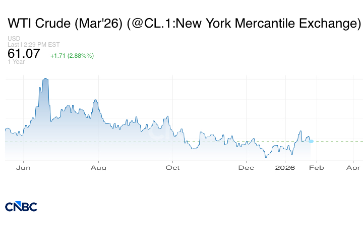 ارتفعت أسعار النفط مسجلةً مكاسب أسبوعية، يوم الجمعة 23 يناير/ كانون الثاني، بعد أن جدد الرئيس الأميركي دونالد ترامب تهديداته لإيران، وهي منتج رئيسي للنفط في الشرق الأوسط، مما أثار مخاوف من عمل عسكري قد يؤدي إلى اضطراب الإمدادات، كما فرضت واشنطن عقوبات جديدة على أسطول الظل الإيراني في وقت تعطل فيه الإنتاج من حقل بقازاخستان.