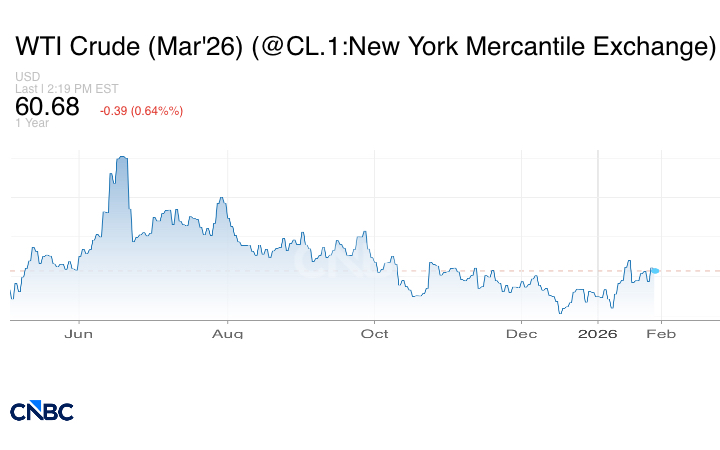 تراجع أسعار النفط عند التسوية، يوم الاثنين 26 يناير/ كانون الثاني، بعد ارتفاعها بأكثر من 2% في الجلسة السابقة، في ظل استمرار التوترات بين أميركا وإيران، وذلك بعد استئناف خط أنابيب التصدير الرئيسي في قازاخستان عملياته بكامل طاقته، في ظل تعطل العمليات في مناطق رئيسية لإنتاج الخام في الولايات المتحدة.