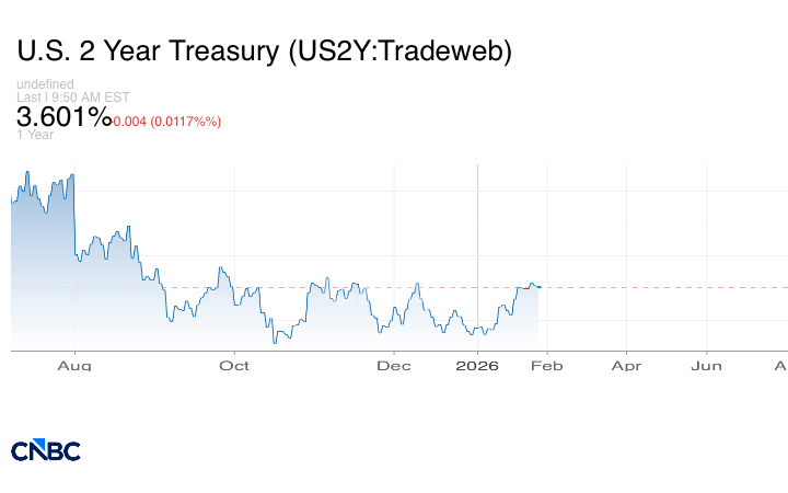 بينما تراجع عائد سندات الخزانة لأجل سنتين بأقل من نقطة أساس واحدة إلى 3.603%. أما عائد سندات الخزانة لأجل 30 عاماً، فقد انخفض بأكثر من نقطة أساس واحدة إلى 4.816%.