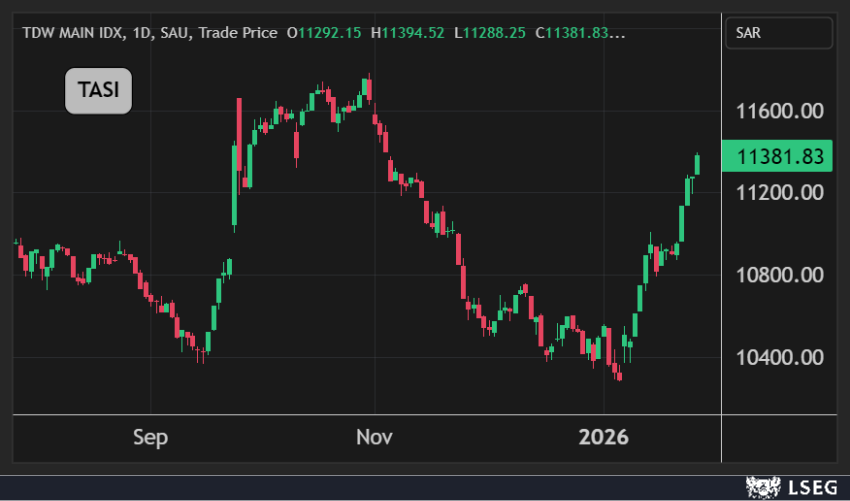 · مؤشر تاسي يسجل أعلى إغلاق يومي في نحو 3 أشهر