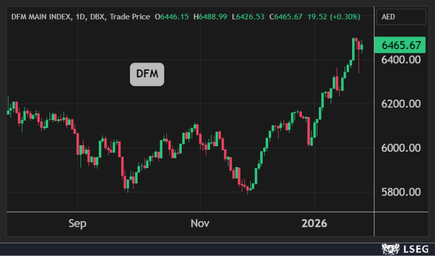 في حين تراجع سهم الإمارات دبي الوطني بنسبة 0.6% رغم إعلان البنك عن نمو أرباحه بنسبة 4% إلى قرابة 24 مليار درهم في عام 2025 متفوقاً على التوقعات.
