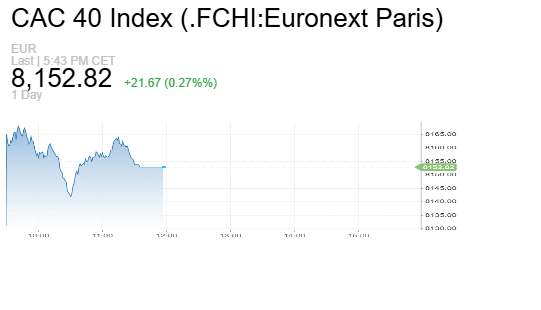 ارتفع مؤشر "كاك 40" الفرنسي إلى 8,152.82 نقطة بزيادة 0.27%.