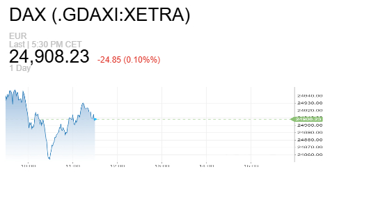 بينما تراجع مؤشر "داكس" الألماني بنسبة 0.10% إلى 24,908.23 نقطة