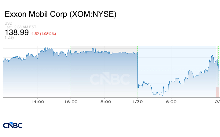 انخفضت أسهم إكسون موبيل بنحو 2%، يوم الجمعة، على الرغم من إعلان عملاق النفط عن تجاوز توقعاته لأرباح وإيرادات الربع الرابع.