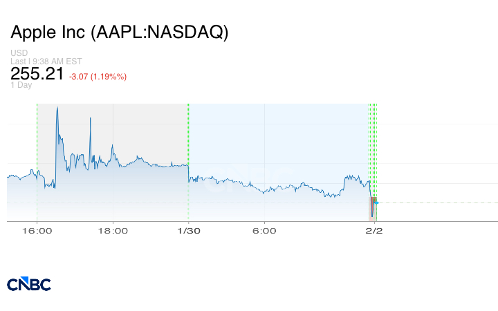 على صعيد تحركات الأسهم، انخفضت أسهم أبل Apple بشكل طفيف حتى بعد أن تجاوزت الشركة توقعات الأرباح والإيرادات للربع الأول من السنة المالية، مدعومةً بارتفاع ملحوظ في مبيعات آيفون. وقفز سهم شركة سانديسك Sandisk لتخزين البيانات بنسبة 19% مدعوماً بتوقعات قوية.