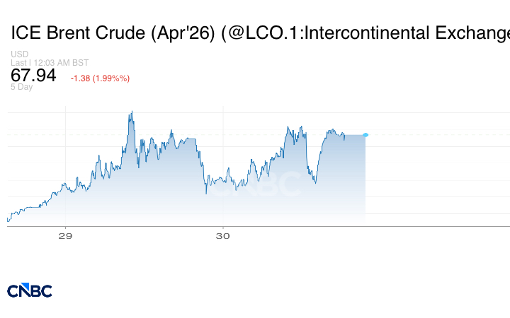 وكان اقترب خام برنت من مستوى 70 دولاراً للبرميل عند التسوية يوم الجمعة، أي بالقرب من أعلى مستوى له في ستة أشهر عند 71.89 دولاراً، والذي بلغه يوم الخميس، رغم التوقعات بأن تؤدي وفرة المعروض خلال عام 2026 إلى ضغوط هبوطية على الأسعار.