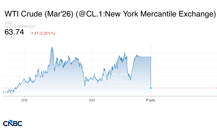 تراجعت أسعار النفط بأكثر من دولار للبرميل في التعاملات المبكرة فجر الاثنين الثاني من فبراير / شباط، بعد أن قال الرئيس الأميركي دونالد ترامب خلال مطلع الأسبوع إن إيران "تجري محادثات جادة" مع واشنطن.