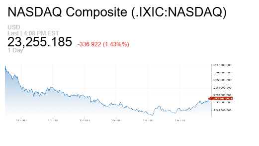كما هبط مؤشر ناسداك المركب بنسبة 1.4%.