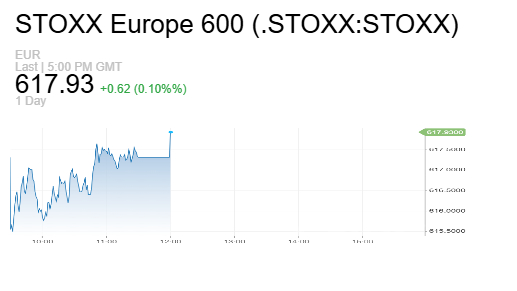 مؤشر ستوكس أوروبا 600 ارتفع بنسبة 0.10% ليصل إلى 617.93 نقطة
