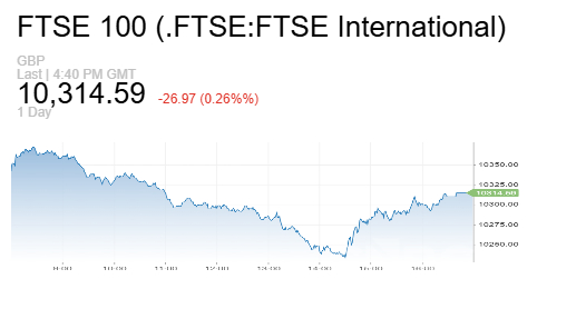 وانخفض مؤشر فوتسي 100 البريطاني بنسبة 0.26%