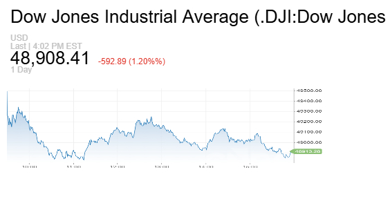 انخفض مؤشر داو جونز الصناعي بنحو 593 نقطة أو 1.2%