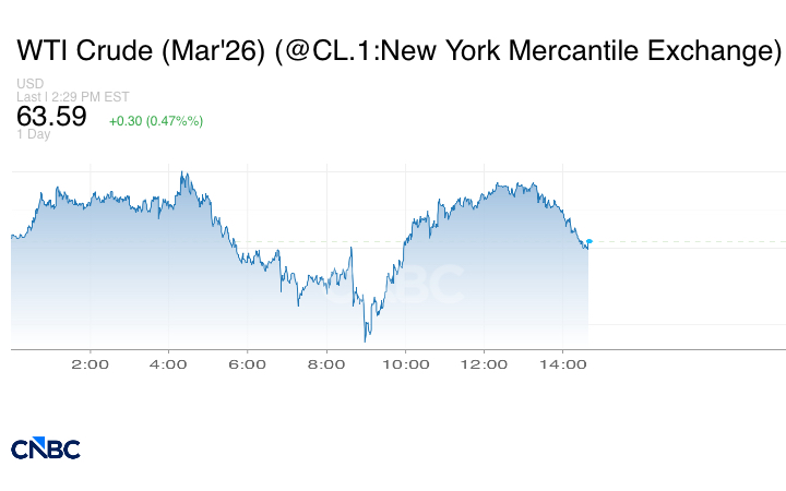 وارتفعت العقود الآجلة للخام الأميركي تصعد 26 سنتاً بما يعادل 0.41% لتبلغ عند التسوية 63.55 دولار للبرميل.