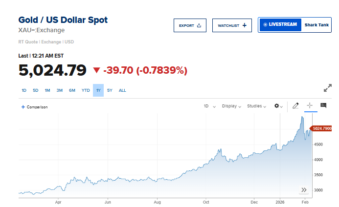 وسجّل الذهب مستوى قياسياً عند 5594.82 دولاراً في 29 يناير كانون الثاني.