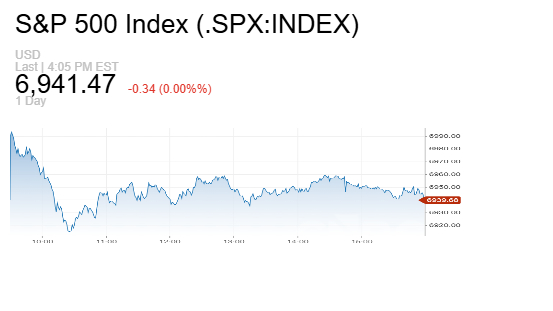بينما استقر مؤشر "إس آند بي 500" بالقرب من الخط المستوي دون تغيير يذكر