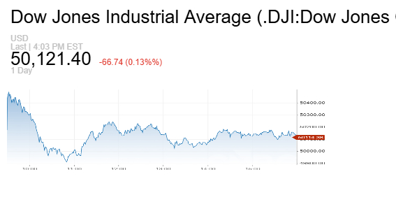 هبط مؤشر داو جونز الصناعي 66.74 نقطة، أو ما يعادل 0.13%