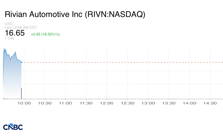 ارتفع سهم الشركة المصنعة للشاحنات الكهربائية Rivian بنسبة 18%.