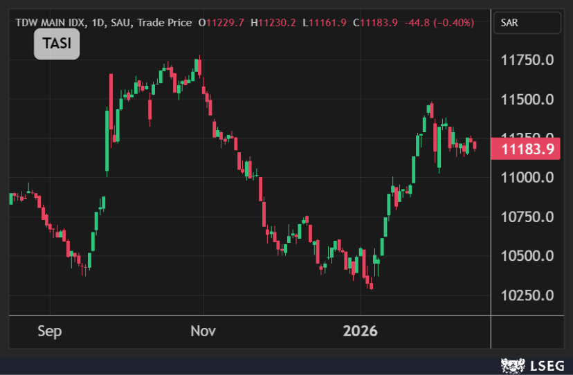 تراجع مؤشر تاسي بنسبة 0.4% في جلسة الإثنين ليسجل ثاني خسارة يومية على التوالي وسط سيولة متواضعة بلغت نحو 4 مليارات ريال.