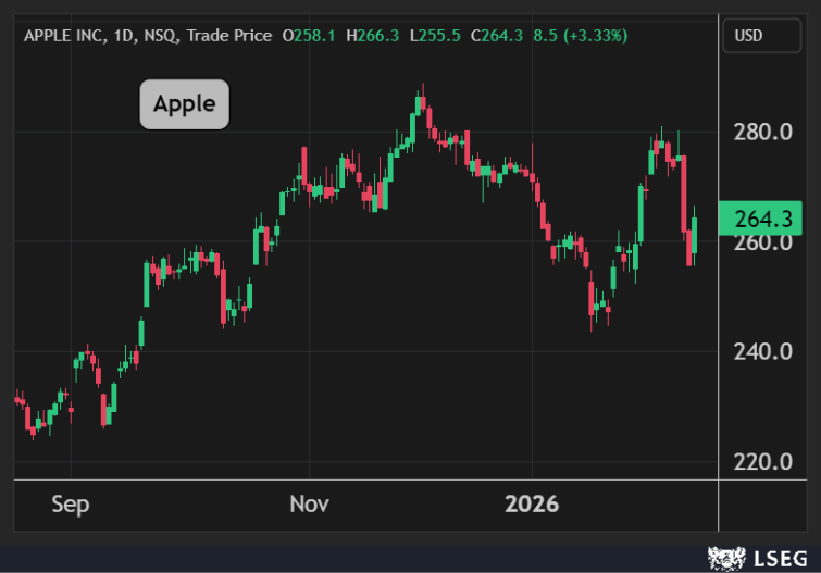 ارتفع سهم Apple بنسبة 3.2% في جلسة الثلاثاء مسجلاً أعلى مكاسب يومية في أسبوعين، لتضيف الشركة نحو 120 مليار دولار إلى قيمتها السوقية في يوم واحد.