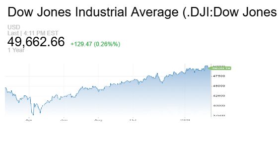 وزاد داو جونز الصناعي 129 نقطة أو 0.26%.