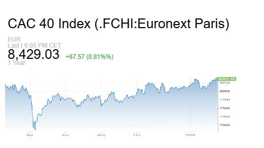 كاك 40 الفرنسي ارتفع 0.81% إلى 8429 نقطة