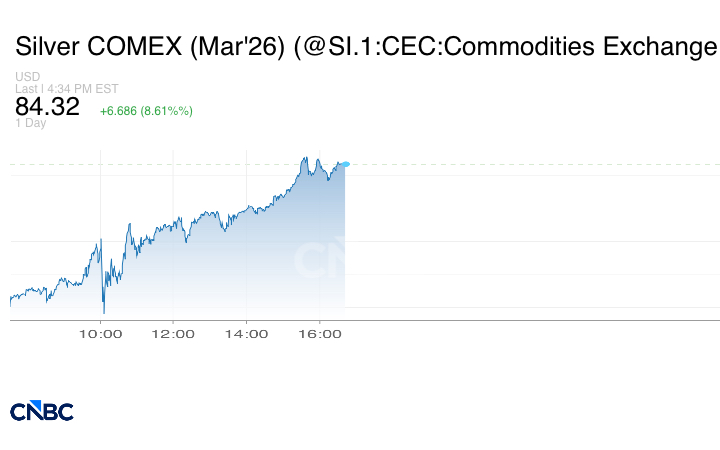 بالنسبة للمعادن الأخرى، ارتفع سعر الفضة الفوري بنسبة 5.8% ليصل إلى 82.92 دولاراً للأونصة.