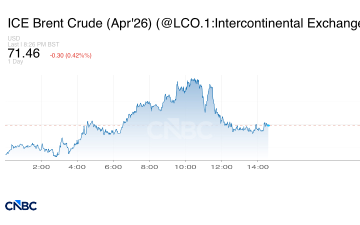 وانخفضت العقود الآجلة لخام برنت 27 سنتاً أو 0.38% لتبلغ عند التسوية 71.49 دولار للبرميل.