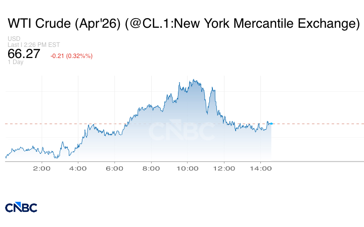 وتراجعت العقود الآجلة لخام غرب تكساس الوسيط الأميركي 17 سنتاً أو 0.26% لتبلغ عند التسوية 66.31 دولار للبرميل.