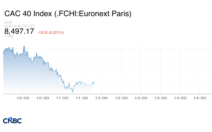 وانخفض مؤشر كاك 40 الفرنسي 0.2%، ليصل إلى 8497.17 نقطة.