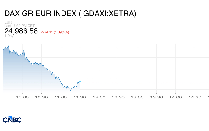 وخسر مؤشر داكس الألماني 1.09% إلى 24986.48 نقطة.