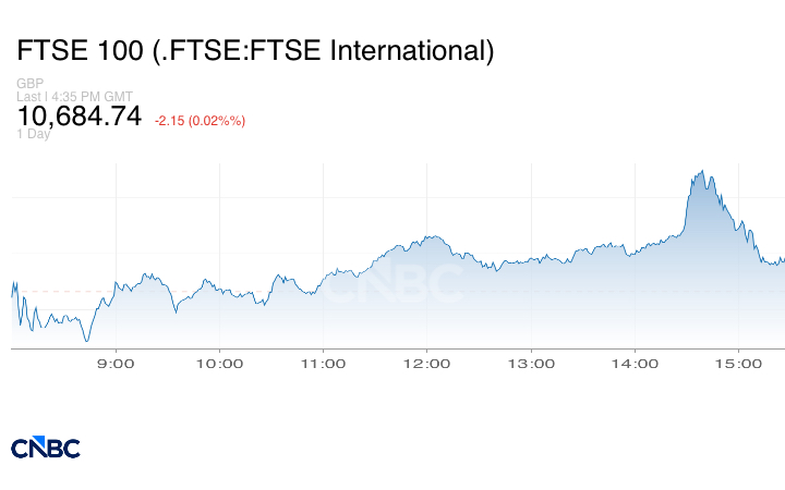 وتراجع مؤشر فوتسي البريطاني بنسبة 0.2% إلى 10684.83 نقطة.