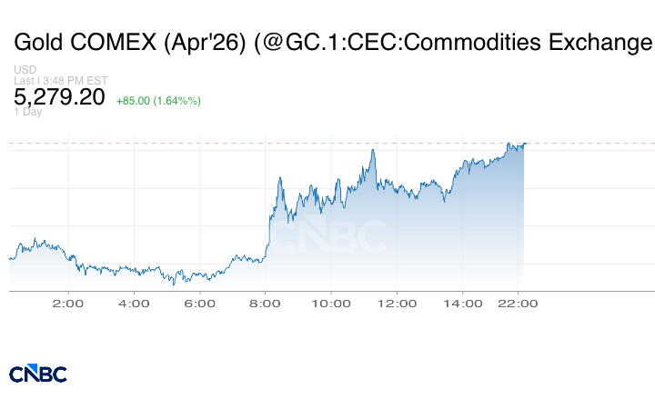 وزادت العقود الأميركية الآجلة للذهب تسليم أبريل/ نيسان عند التسوية 1% إلى 5247.90 دولار.