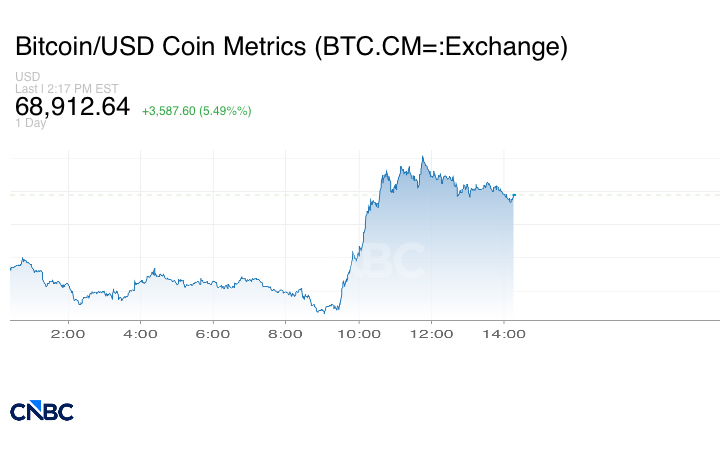 إلا أن البتكوين انتعش لاحقاً خلال الجلسة الأميركية، ليرتفع إلى ما يقارب 69,000 دولار، مسجلًا بذلك ارتفاعاً بأكثر من 5% خلال اليوم.
