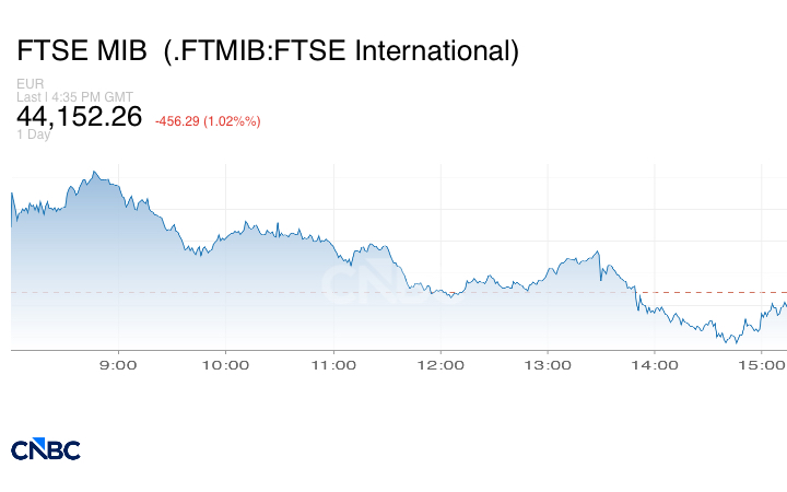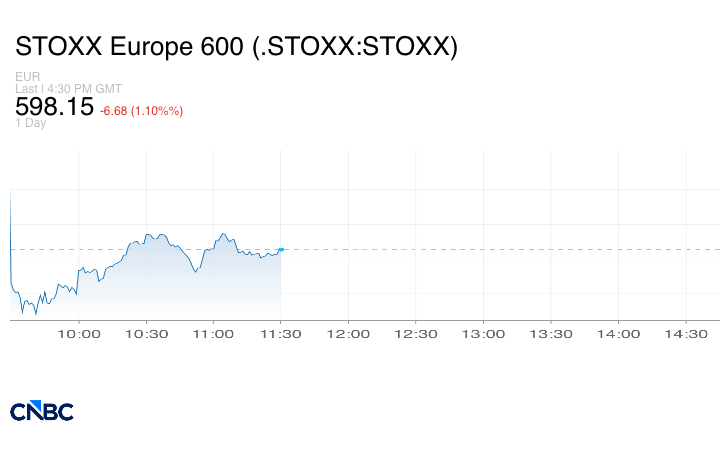 وانخفض مؤشر ستوكس 600 الأوروبي الشامل قد انخفض بنسبة 1.10%، حيث سجلت معظم البورصات الرئيسية وتقريباً جميع القطاعات أداءً سلبياً.
