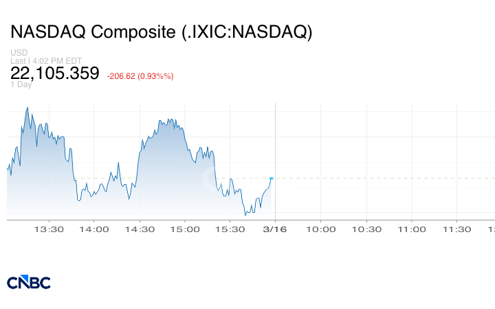 بينما تراجع مؤشر ناسداك المركب بنسبة 0.93% مسجلاً 22.105.359 نقطة.