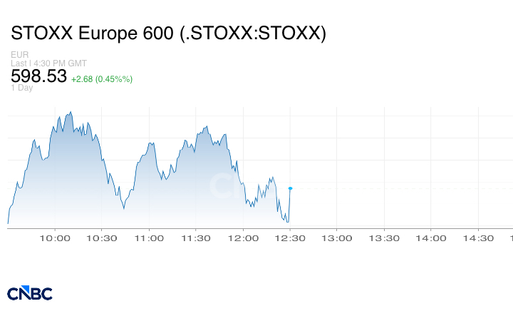 في ختام التداولات، ارتفع مؤشر ستوكس 600 الأوروبي بنسبة 0.45% مسجلاً 598.53 نقطة.