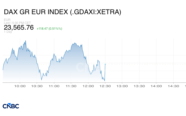 وصعد مؤشر داكس الألماني بنسبة 0.51% مغلقاً عند 23,565.76 نقطة.