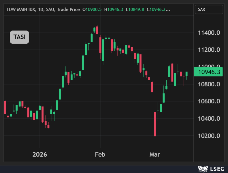 ارتفع مؤشر تاسي بنحو 0.6% في الجلسة الوحيدة له خلال هذا الأسبوع قبل بدء عطلة عيد الفطر، ولكنه ظل دون مستويات 11000 نقطة.