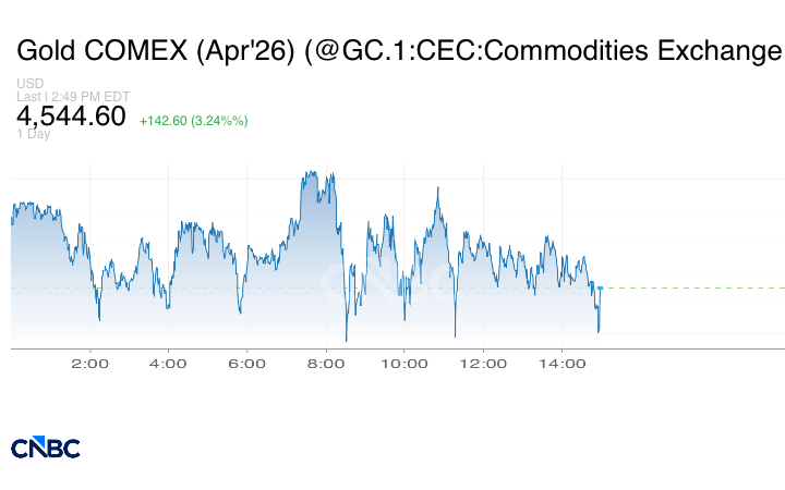 وبلغ سعر الذهب في المعاملات الفورية 4552.94 دولار للأونصة، بعد أن سجل أدنى مستوى له في أربعة أشهر يوم الاثنين. وصعدت العقود الآجلة الأميركية للذهب تسليم أبريل / نيسان 3.4% عند التسوية إلى 4552.30 دولار.