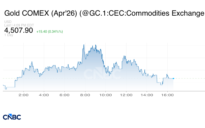 وارتفعت العقود الآجلة للذهب الأميركي تسليم أبريل بمقدار 115.30 دولاراً لتبلغ عند التسوية عند 4524.30 دولار.