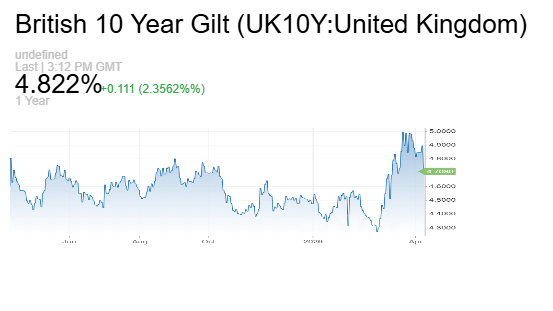 شهدت السندات البريطانية والألمانية تقلبات حادة، حيث ارتفع عائد السندات البريطانية لأجل 10 سنوات بأكثر من 6 نقاط أساس إلى 4.775% بعد أن فقد 21 نقطة أساس الأربعاء.