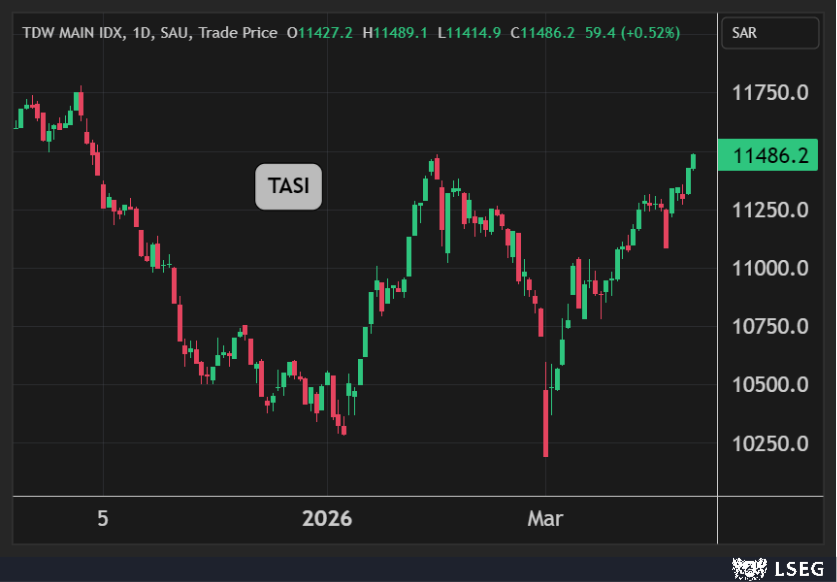 مؤشر تاسي يسجل أعلى إغلاق يومي في 5 أشهر