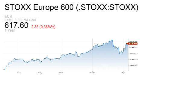 انخفض مؤشر ستوكس 600 الأوروبي بنسبة 0.38% عند 617.6 نقطة