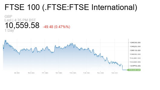 وهبط مؤشر فوتسي 100 البريطاني بنسبة 0.47%