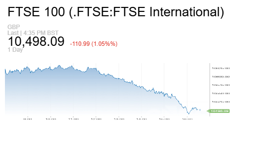 كما تراجع FTSE 100 البريطاني بنسبة 1.05%