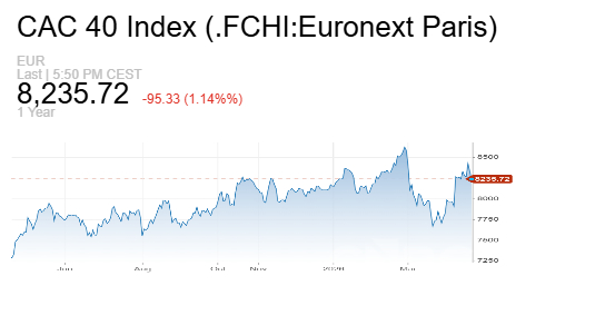 فيما تراجعت مؤشرات رئيسية مثل CAC 40 الفرنسي بنسبة 1.14%