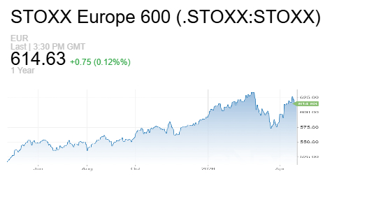 ارتفع مؤشر Stoxx 600 بنسبة 0.12% ليغلق عند 614.63 نقطة